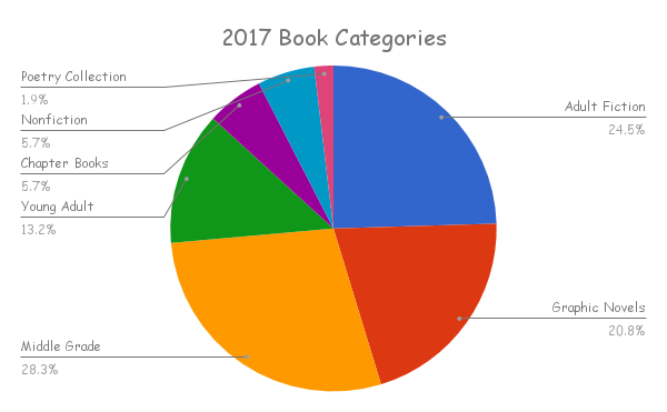 - Read 200 books, with at least 52 of them being chapter books or above (this is basically the same goal as 2017, but I want to track my picture book/early readers in 2018)