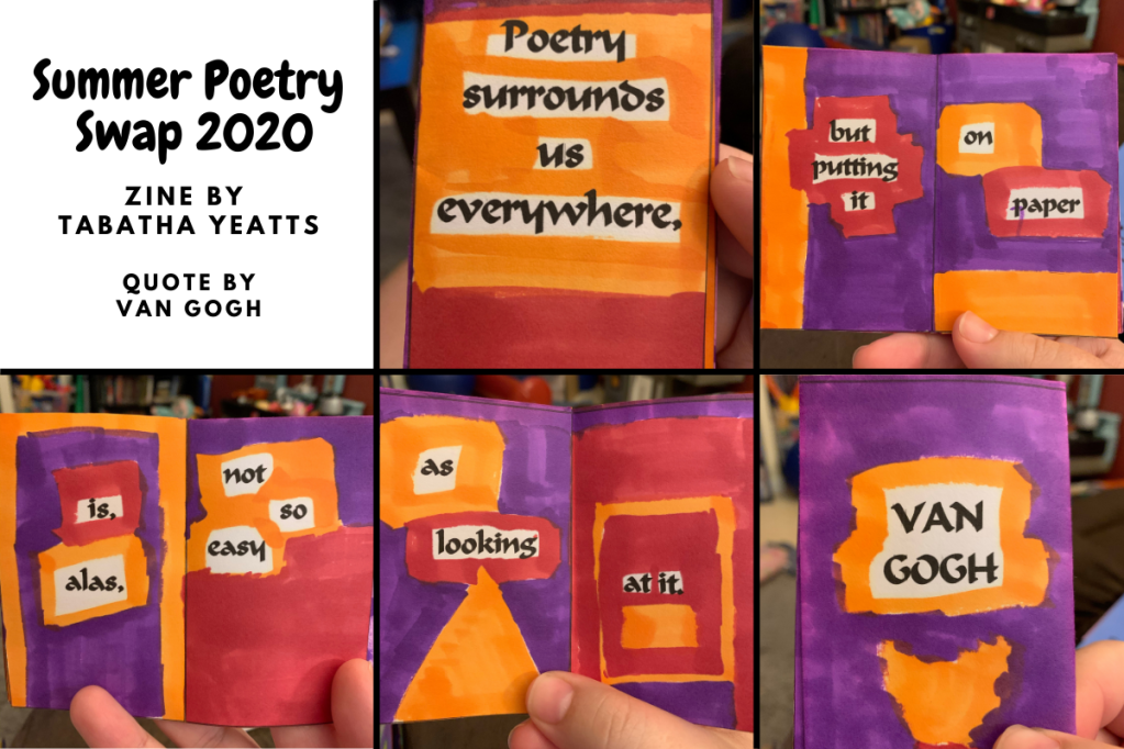 I have to investigate doing a zine. They look fun. The summer poetry swap as well as the winter swap helps to keep the creative juices flowing. I will be participating in Poemtober. I love doing them.